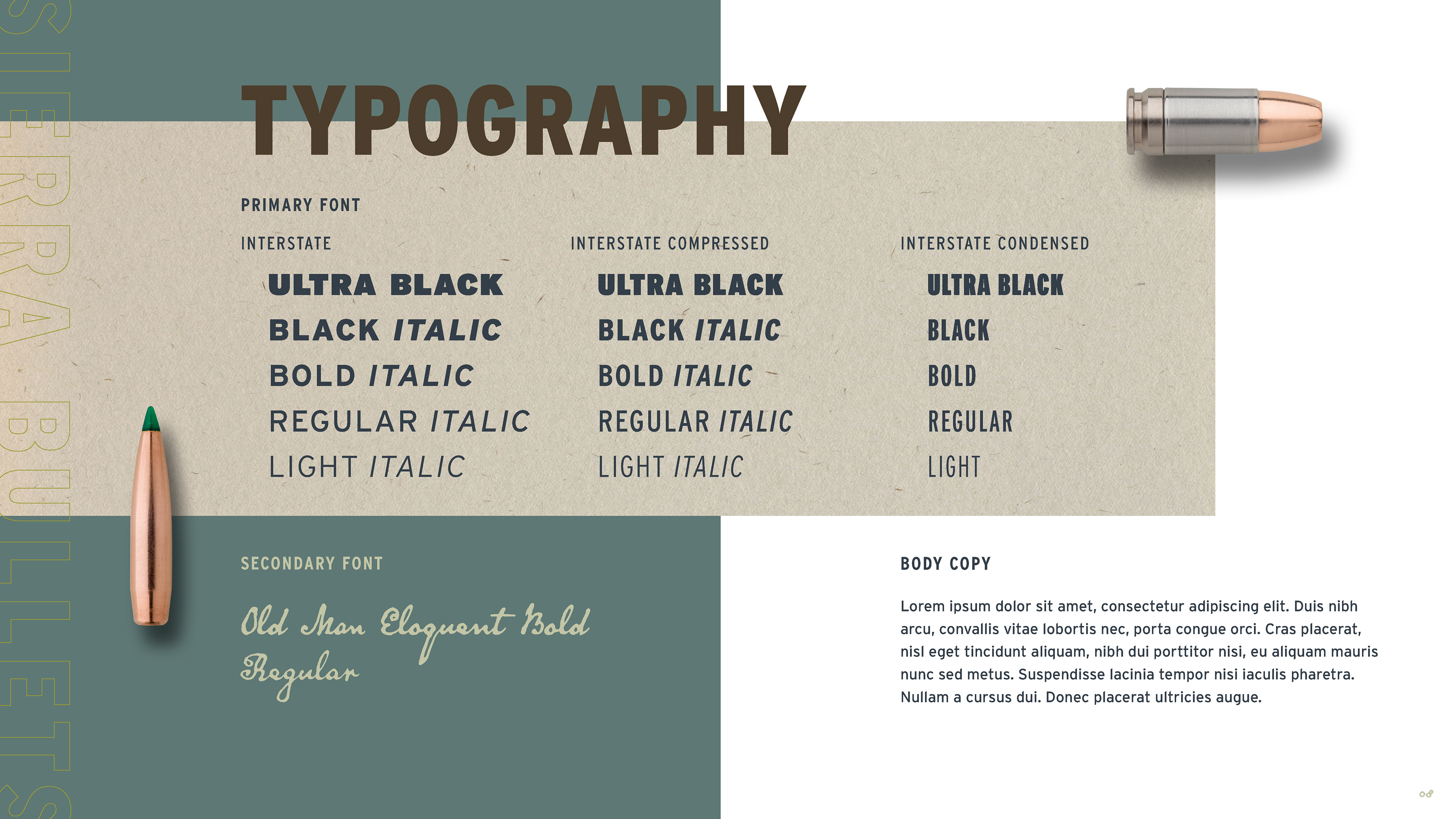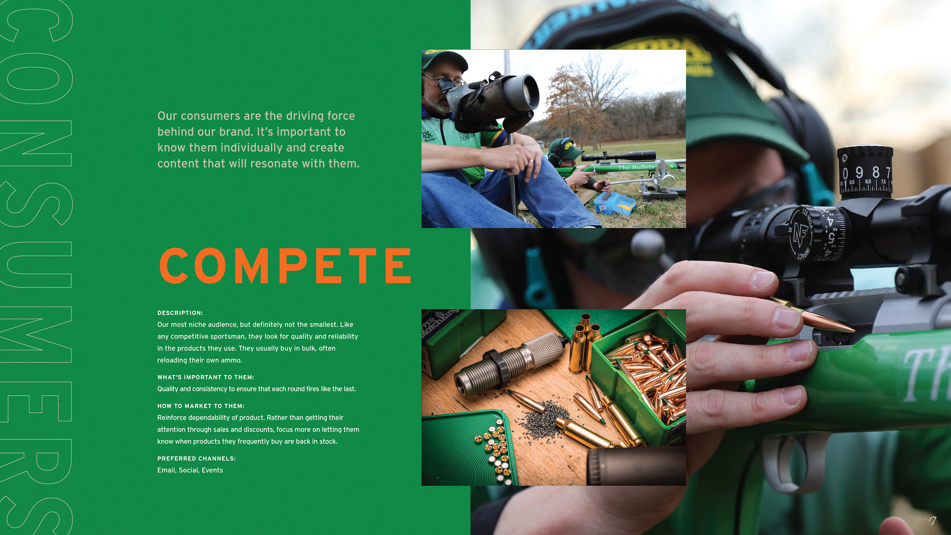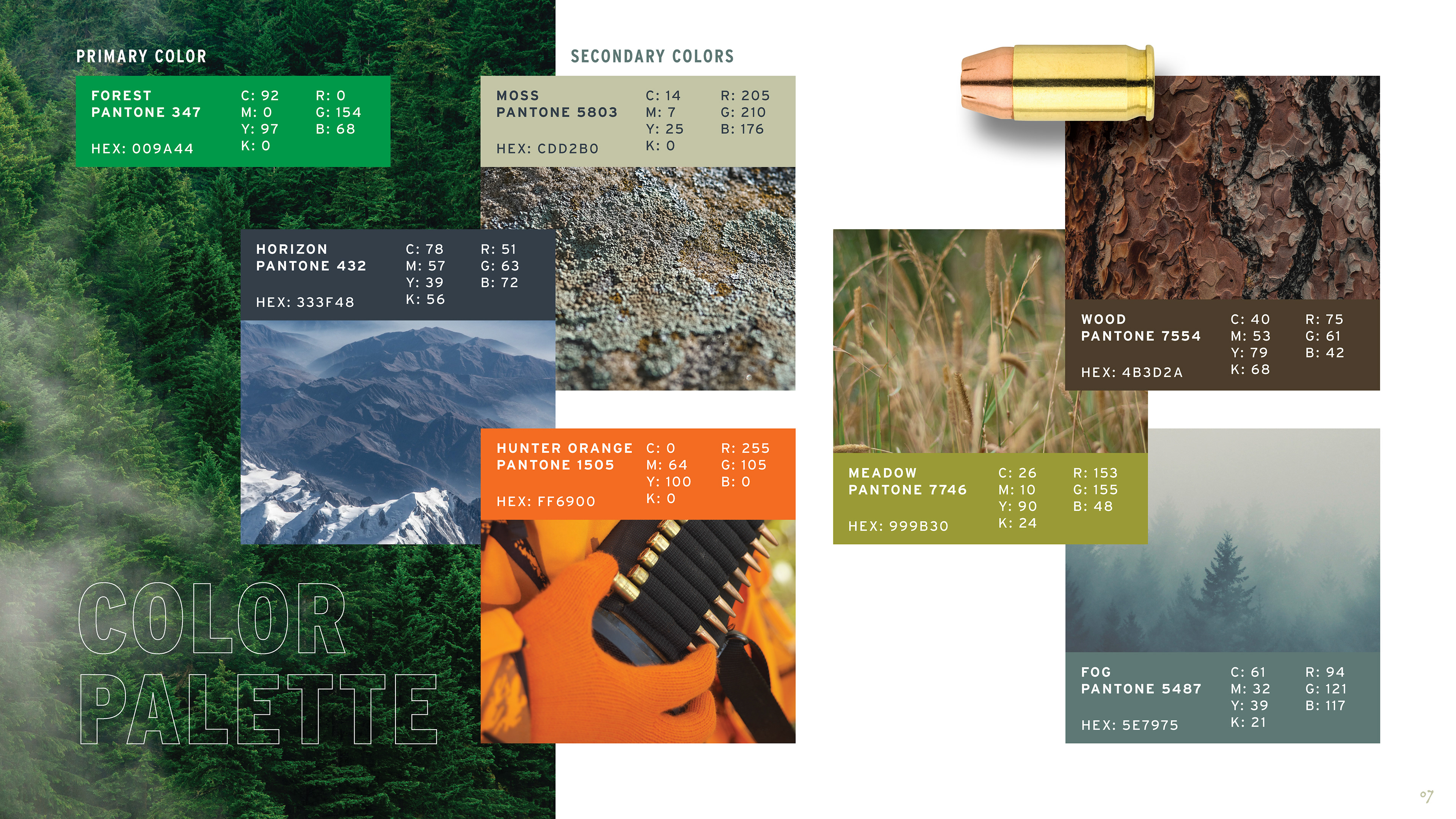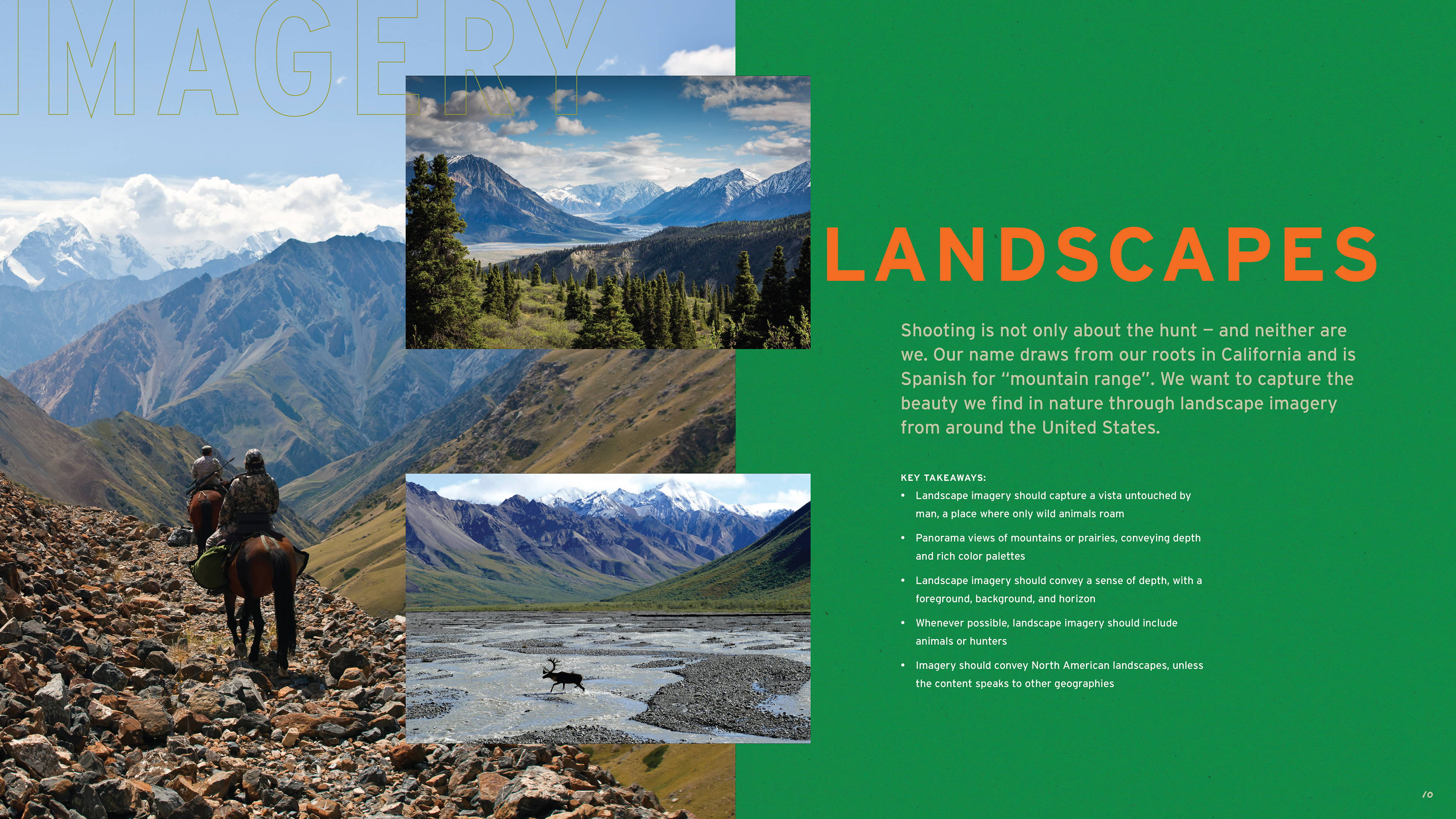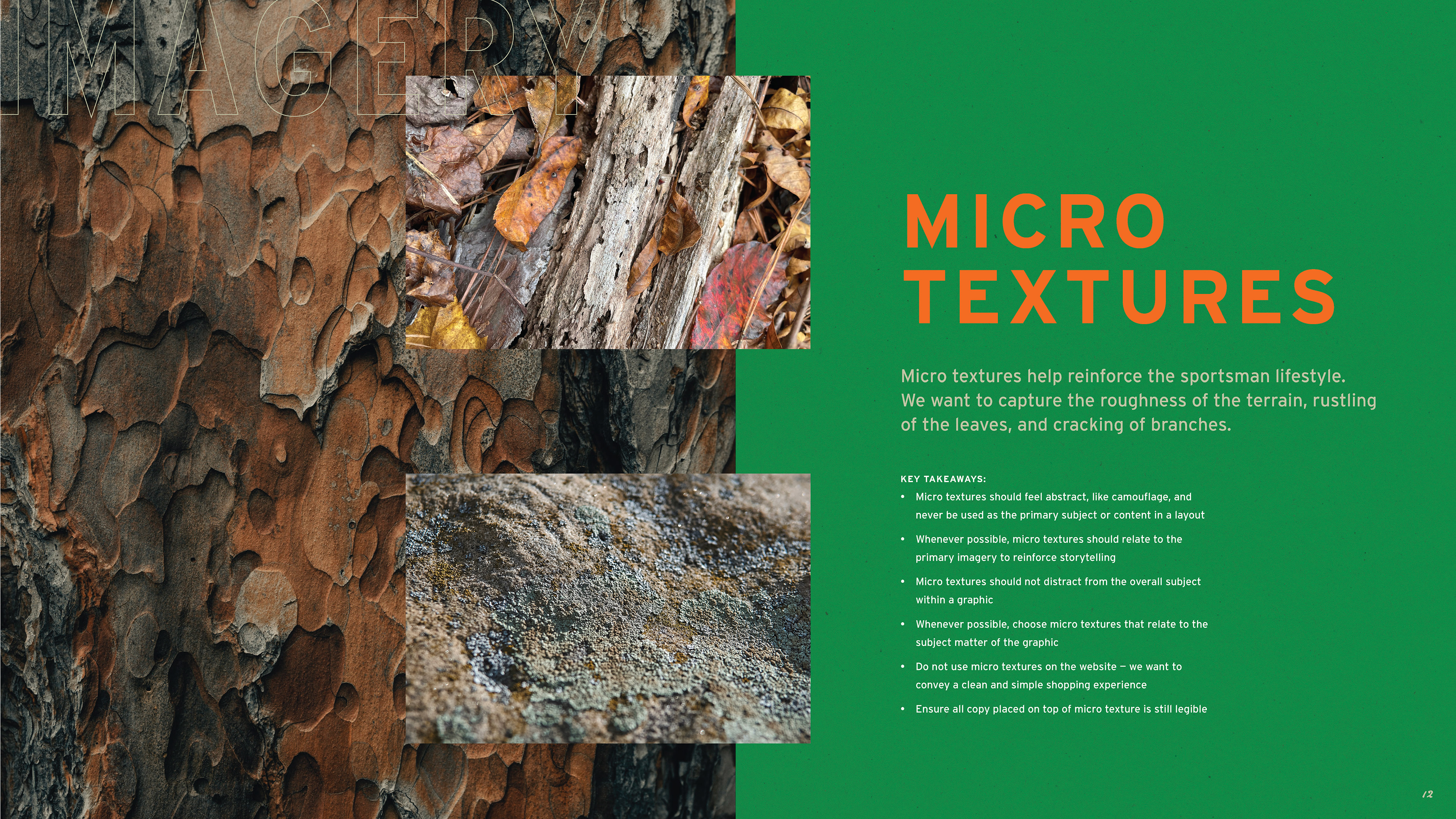 The work began in 2019 with packaging and website updates, project by project, product line by product line. As the work demonstrated what the brand was capable of, the scope expanded. What started as individual packaging assignments eventually led to a full brand guidelines document — one that codified the complete visual language of Sierra: logo standards, a color palette drawn from the natural landscape the brand's consumers inhabit, a typography system built for both heritage and performance contexts, and three distinct imagery categories — lifestyle, landscapes, and animals — each with detailed direction for how to shoot and select photography. Beyond visuals, the guide defined Sierra's tone of voice and mapped three core consumer personas: Compete, Hunt, and Defend, each with distinct needs, motivations, and preferred channels.