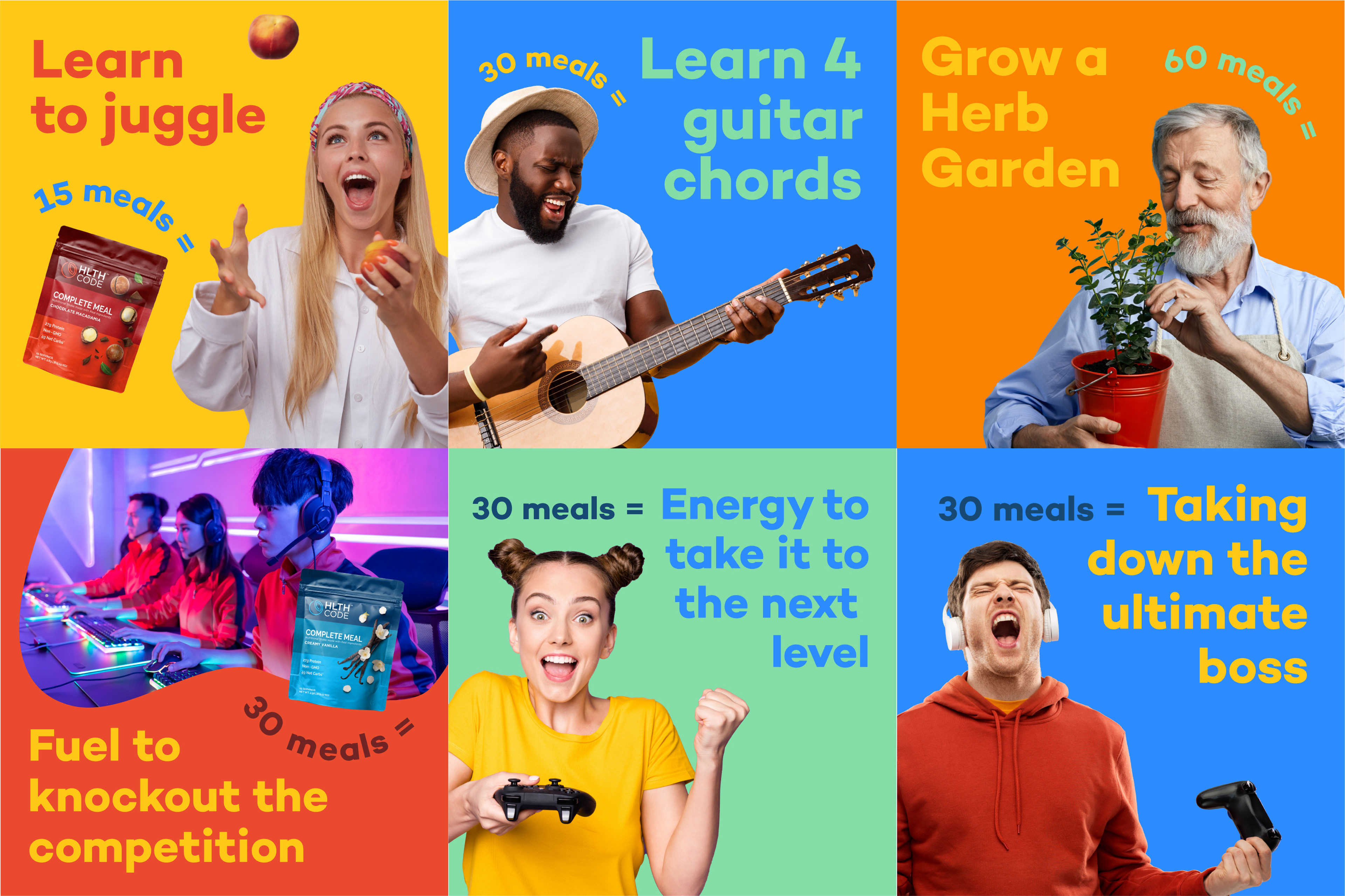 HLTH Code aimed to create a significant impact within the meal replacement market. Our strategy for social marketing revolved around a straightforward concept: HLTH Code offers a time-saving solution. By crafting relatable copy and employing captivating graphics, we successfully developed a distinct visual narrative that strongly resonated with consumers. Additionally, through UX optimization, social content creation, and landing page design, we effectively boosted their subscriber count and attracted a broader audience to this remarkable brand.